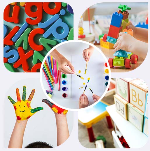 Our classrooms are spacious and bright. They are equipped with a wide assortment of materials and educational toys for large and small motor development, reading and number readiness, art, science, music, dramatic play, audio-visual aids, and other supplies to help develop each child’s growing physical capacities and curiosity for learning.